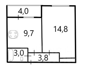Квартира в светлой отделке от застройщика. Не угловая. Жилая площадь 14,8 кв. м. Кухня 9,7 кв. м. Совмещенный сан узел 3 кв.м. Также просторная застекленная лоджия 4 кв.м.