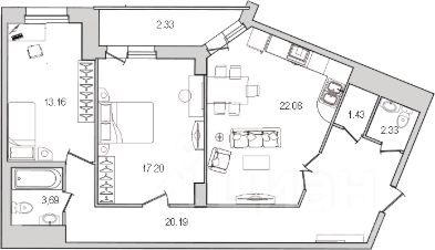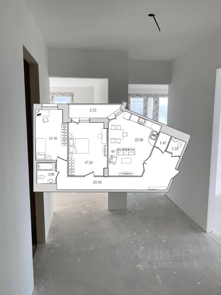 Квартира с белой (предчистовой) отделкой whitebox, в квартире 2 больших санузла и кладовка (кладовку можно объединить с санузлом)
