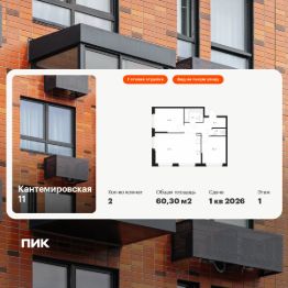 Продаётся 2-комн. квартира площадью 60,3 кв.м на 1 этаже 13 этажного дома (Корпус 5, Секция 1) проекта ПИК Кантемировская 11. Светлый просторный подъезд на уровне земли, функциональная планировка, большие окна, c отделкой.