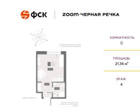 Цена со специальной скидкой в прямой продаже от застройщика — только в этом месяце. Апартамент-студия в комплексе класса бизнес-лайт Zoom Чёрная Речка на 4-м этаже. Общая площадь 21,34. Предчистовая отделка.