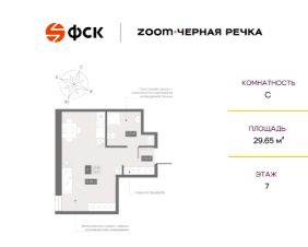 Цена со специальной скидкой в прямой продаже от застройщика — только в этом месяце. Апартамент-студия в комплексе класса бизнес-лайт Zoom Чёрная Речка на 7-м этаже. Общая площадь 29,65. Предчистовая отделка.