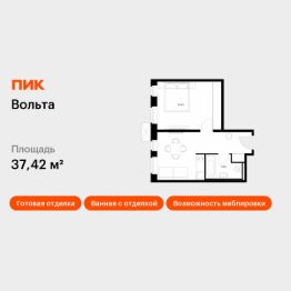 Продаются 1-комн. апартаменты площадью 37,42 кв.м на 11 этаже 15 этажного дома (Вольта, Секция 1) проекта ПИК Вольта.