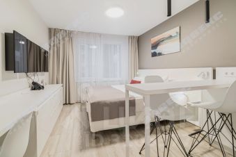 Студия имеет удобную функциональную планировку. В юните дополнительно установлен кондиционер.