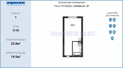 Отличная транспортная доступность. Станция метро и остановки общественного транспорта в 2-х минутах пешком. До центра на метро - 10 минут, до аэропорта - 30 минут на автомобиле.