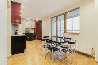 Войдя в квартиру мы попадаем в просторный холл (25,6 м), где расположена вместительная гардеробная, далее идет зона отдыха и кухня (16,6 кв.м), смежная с гостиной (25,6.кв.м) Из кухни выход на лоджию( 5.7 кв.м.) . Жилая зона состоит из 2-х спален. Первая спальня (21,6 кв.м )с большой гардеробной ( 3,7 кв.м.) Вторая спальня ( 13,2 кв. м. ) Две спальни объединяет большая лоджия (10,6 кв.м.)