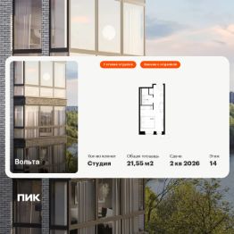 Продаются апартаменты-студия площадью 21,55 кв.м на 14 этаже 15 этажного дома (Вольта, Секция 1) проекта ПИК Вольта.