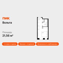 Продаются апартаменты-студия площадью 21,56 кв.м на 13 этаже 15 этажного дома (Вольта, Секция 1) проекта ПИК Вольта.