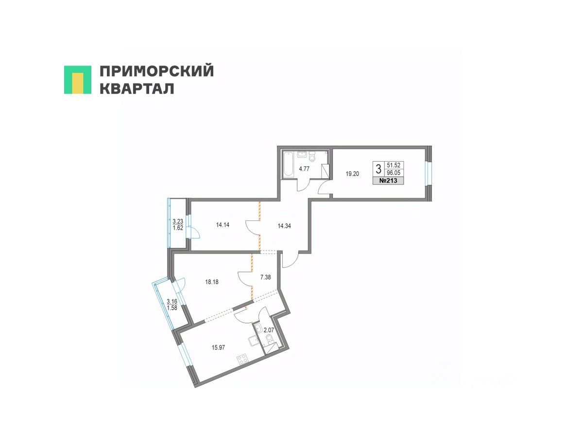 Продается 3 - комнатная квартира общей площадью 95.90 кв.м., на 2 этаже в построенном и заселенном корпусе 40 (год сдачи: 2024 г.)