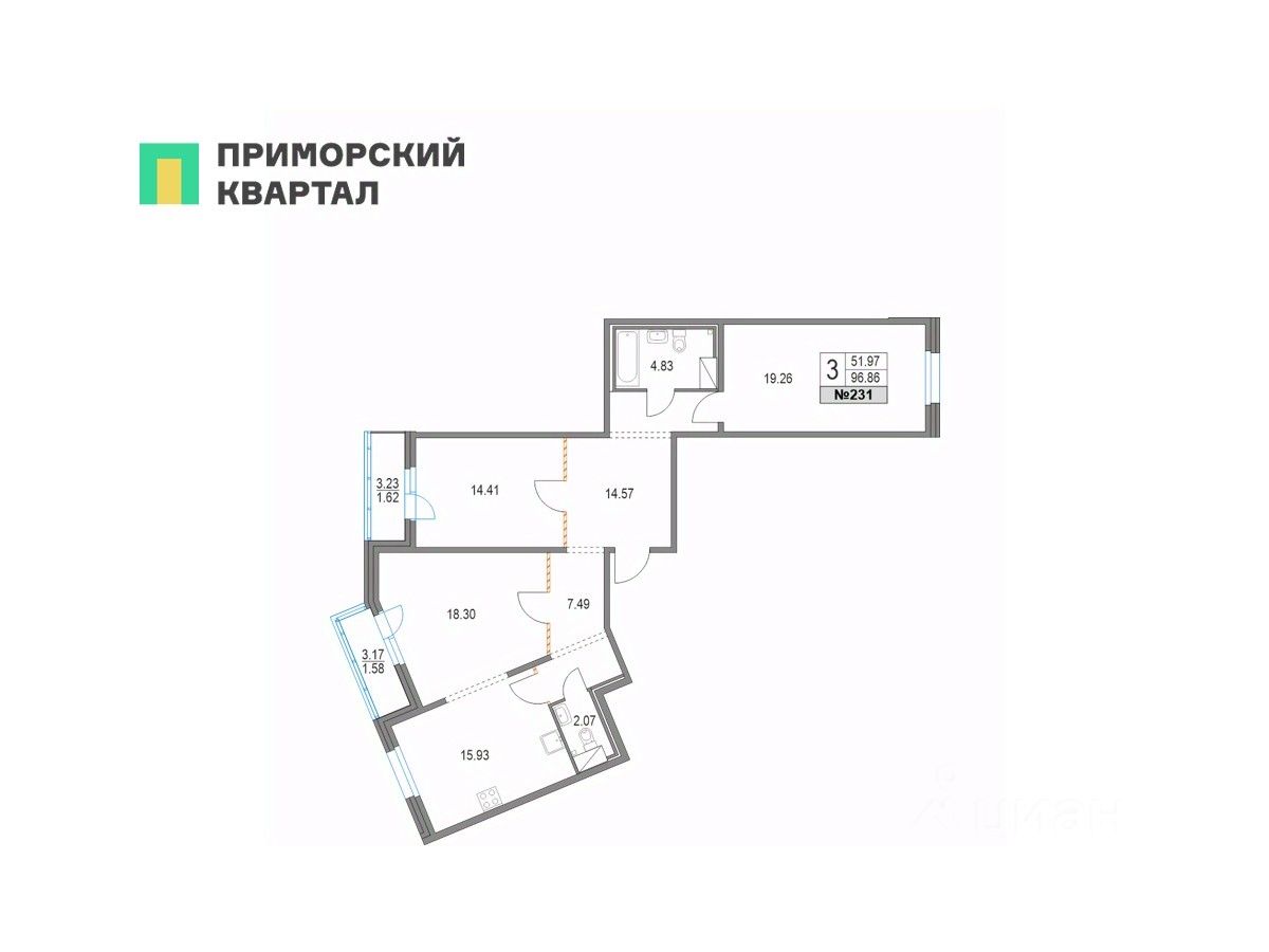 Продается 3 - комнатная квартира общей площадью 96.70 кв.м., на 7 этаже в построенном и заселенном корпусе 40 (год сдачи: 2024 г.)