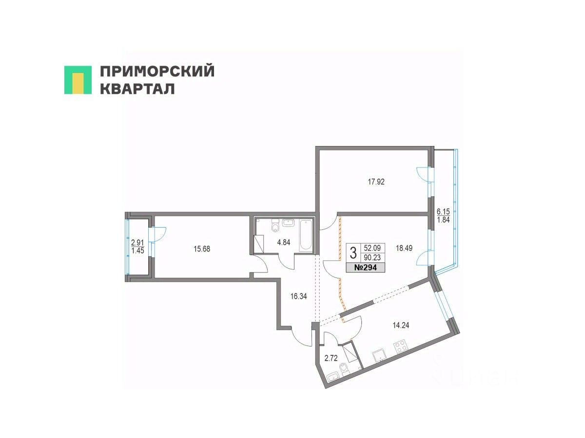 Продается 3 - комнатная квартира общей площадью 90.20 кв.м., на 3 этаже в построенном и заселенном корпусе 40 (год сдачи: 2024 г.)