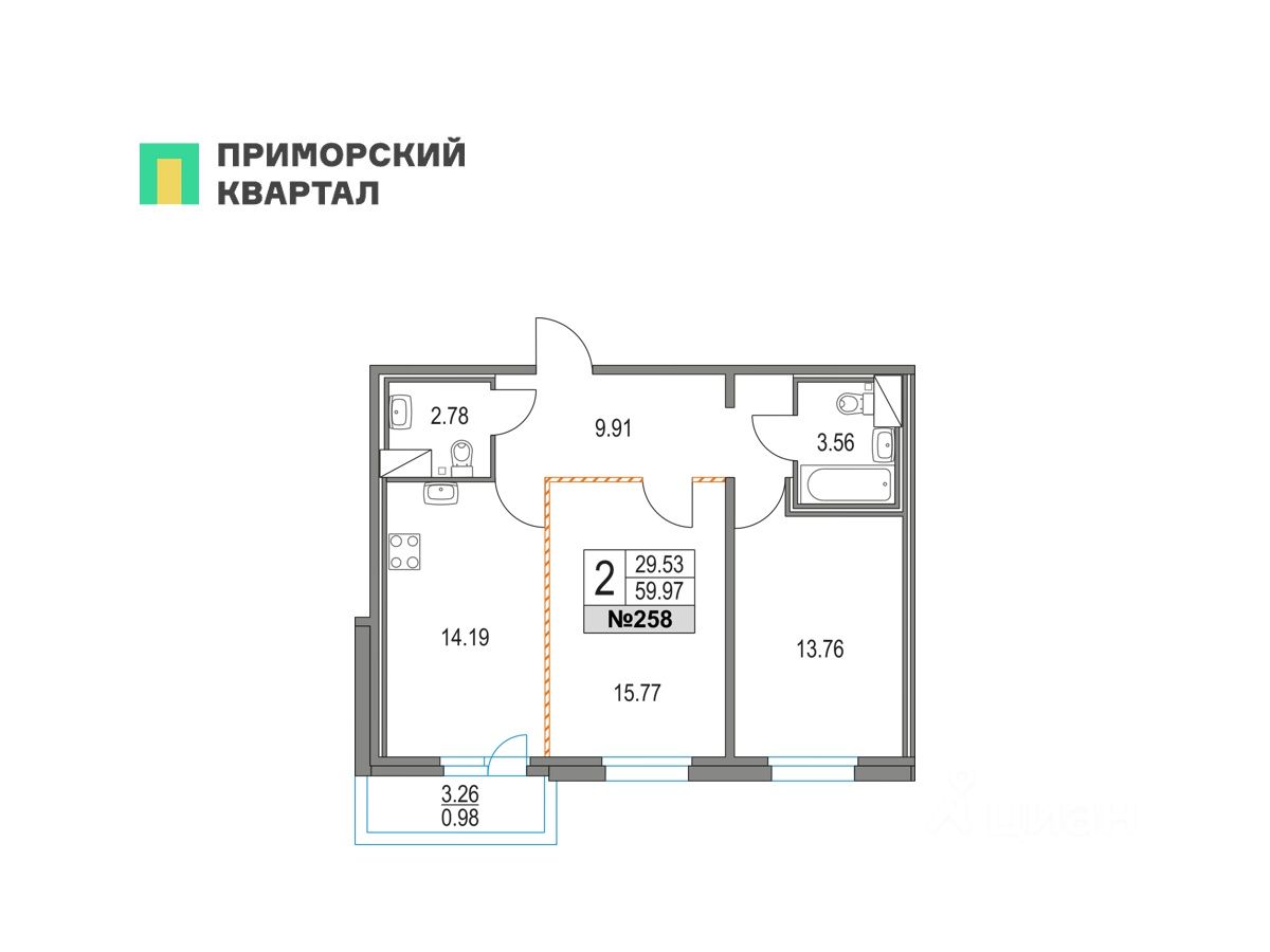 Продается 2 - комнатная квартира общей площадью 59.97 кв.м., на 2 этаже в построенном и заселенном корпусе 42 (год сдачи: 2024 г.)