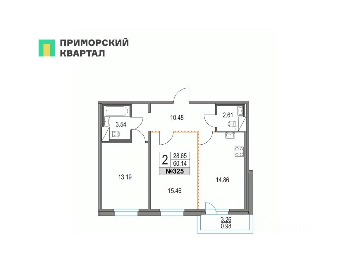 Продается 2 - комнатная квартира общей площадью 60.14 кв.м., на 4 этаже в построенном и заселенном корпусе 42 (год сдачи: 2024 г.)