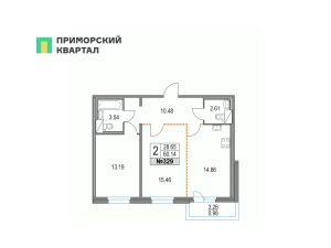 Продается 2 - комнатная квартира общей площадью  60.14 кв.м., на 5 этаже в построенном и заселенном корпусе 42 (год сдачи: 2024 г.)