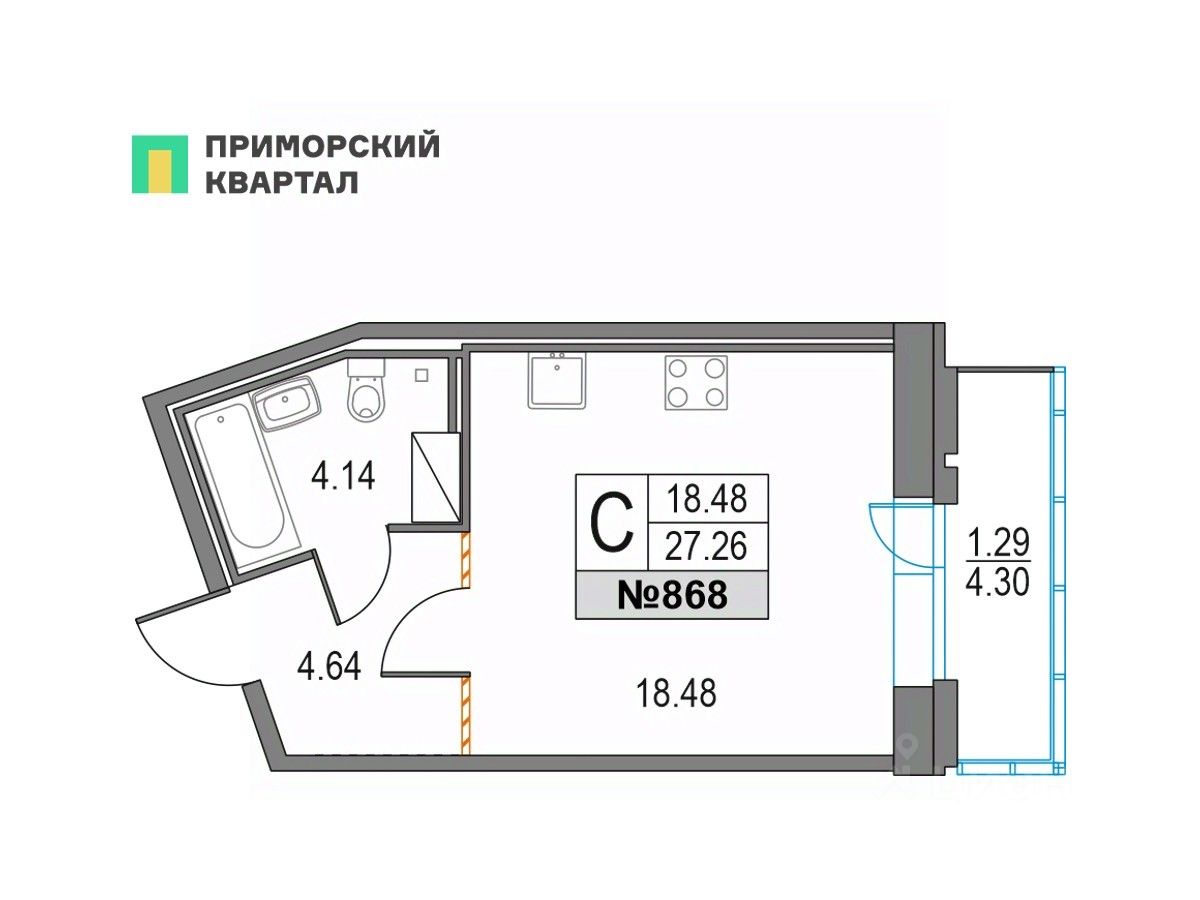 Продается студия общей площадью  27.26 кв.м., на 16 этаже в построенном и заселенном корпусе 41 (год сдачи: 2024 г.)
