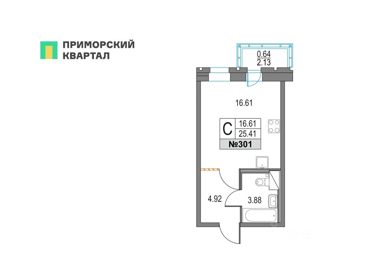 Продается студия общей площадью  25.41 кв.м., на 2 этаже в построенном и заселенном корпусе 41 (год сдачи: 2024 г.)