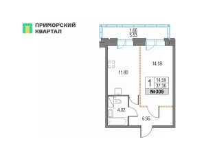 Продается 1 - комнатная квартира общей площадью 37.36 кв.м., на 3 этаже в построенном и заселенном корпусе 41 (год сдачи: 2024 г.)