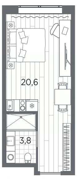1-комн. апартаменты-студия с отделкой в ЖК "Industrial AVENIR" на 2 этаже. Общая площадь: 24.4 кв.м., площадь гостиной 20.6 кв.м., из которых 5 кв.м. выделено под кухонную зону. Все окна выходят на одну сторону. В апартаментах один совмещенный санузел. Высота потолков 2.5 м.