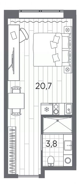 Продаются 1-комн. апартаменты-студия с отделкой в ЖК "Industrial AVENIR" на 5 этаже. Общая площадь: 24.5 кв.м., площадь гостиной 20.7 кв.м., из которых 5 кв.м. выделено под кухонную зону. Все окна выходят на одну сторону. В апартаментах один совмещенный санузел. Высота потолков 2.5 м.
