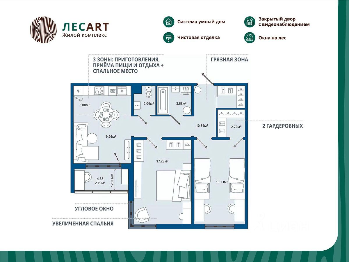 Продаётся 2-комнатная квартира 396, общей площадью 69.85 кв.м., на 5. Дом комфорт-класса, 12 этажей, в окружении леса и малоэтажной застройки. Проект с умным домом. Передача квартир в сентябре 2026г.