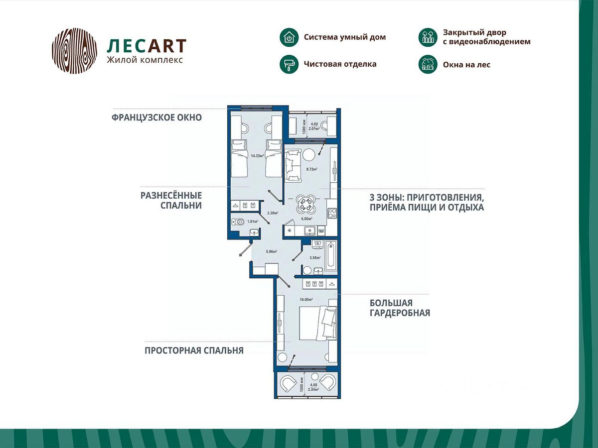 Продаётся 2-комнатная квартира 022, общей площадью 62.13 кв.м., на 4. Дом комфорт-класса, 12 этажей, в окружении леса и малоэтажной застройки. Проект с умным домом. Передача квартир в сентябре 2026г.