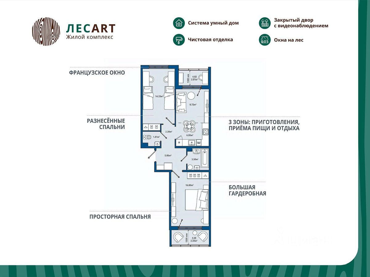 Дворы закрыты от машин, что обеспечивает безопасность детей и взрослых. Для семей с детьми особенно удобно наличие детского сада и школы прямо во дворе комплекса.