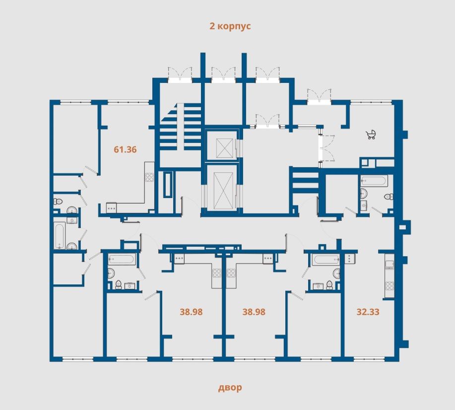 Холлы - это продуманные пространства с колясочными, сквозными проходами и приятной музыкой в лифтах.