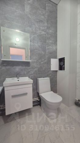 В санузле на стенах и полу крупноформатная керамическая плитка, также в ванной установлен теплый пол.