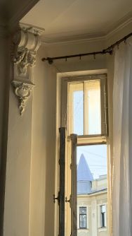 Эркер, камин работал ( надо уточнить у соседей с 5 го этажа заделали они дымоход , если да то можно топить ) антураж настоящего старого фонда