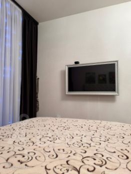 В квартире выполнена отделка в темных тонах. При оборудовании использован каждый сантиметр площади. Есть вся необходимая техника для комфортного проживания: холодильник, стиральная машина, варочная поверхность, СВЧ печь, духовка, вытяжка, кондиционер, электрический камин, телевизор. Все в идеальном состоянии. На всю технику есть документы.