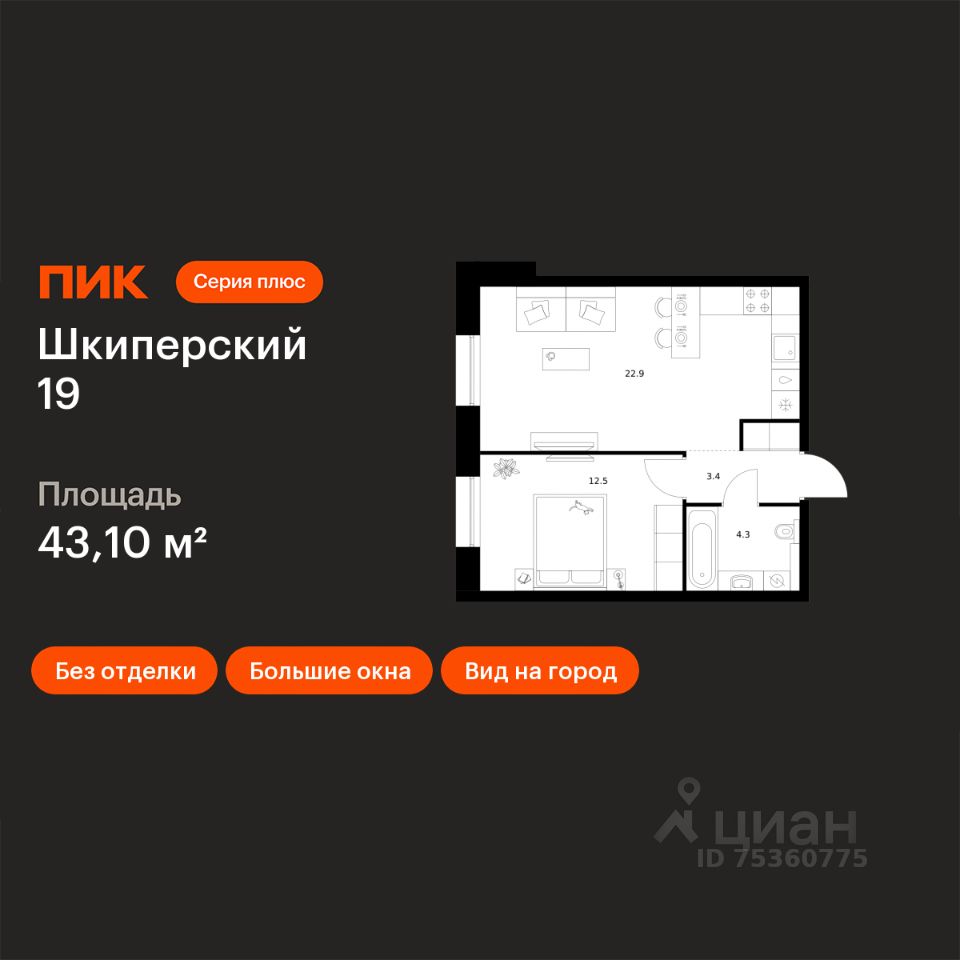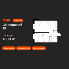 Продаётся 1-комн. квартира площадью 43,1 кв.м на 12 этаже 12 этажного дома (Корпус 2, Секция 1) проекта ПИК Шкиперский 19. Светлый просторный подъезд на уровне земли, функциональная планировка, большие окна, без отделки.