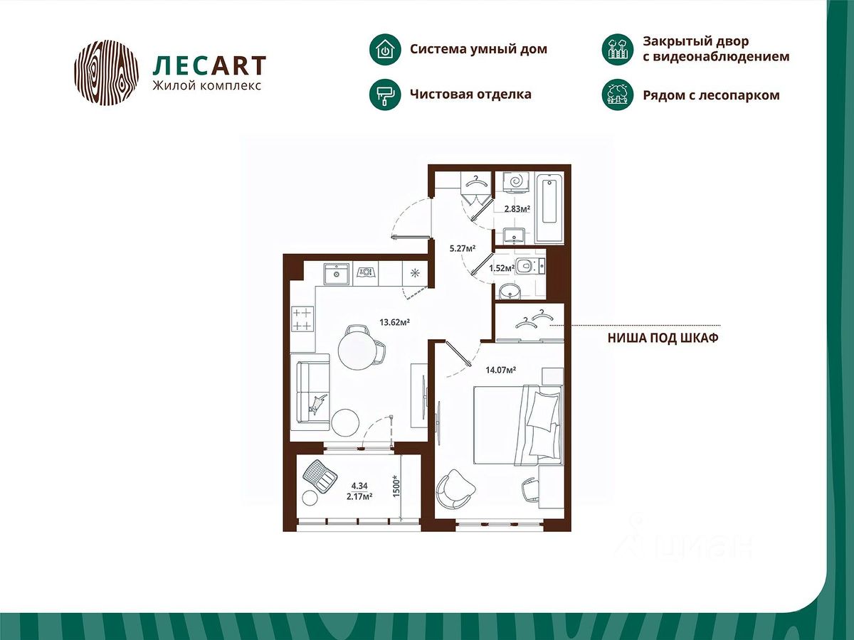 Продаётся 1-комнатная квартира 161, общей площадью 39.48 кв.м., на 8. Дом комфорт-класса, 12 этажей, в окружении леса и малоэтажной застройки. Проект с умным домом. Передача квартир в феврале 2025г.