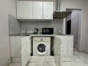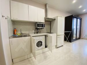 Установлена кухня (кухонный гарнитур, вытяжка, стиральная машина, эл. плита, СВЧ-печь, эл. чайник, фильтр для воды (студия 1), холодильник, набор посуды, обеденный стол + стулья).