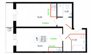 Продается однокомнатная квартира, разделенная на две независимые студии. Каждая студия имеет свой вход, свою кухню, свой санузел, свой балкон (лоджию) по 3 м. кв. Счетчики свет/вода.