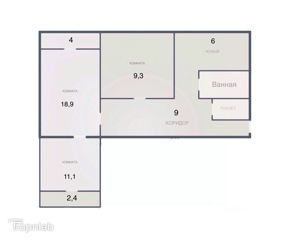 В одной из спален есть выход на лоджию (2,5 м²)