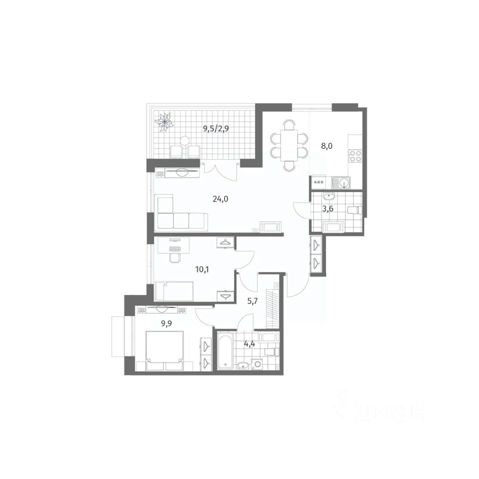 Продается квартира площадью 74.8 м²