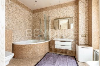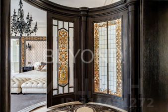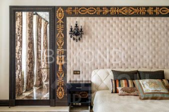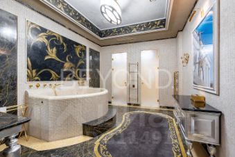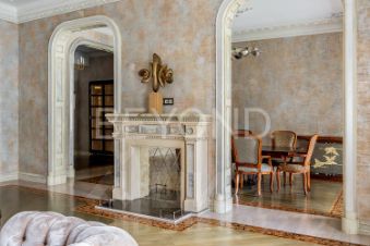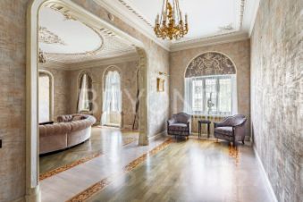 Резиденция общей площадью 453 кв. м спроектирована в просторных масштабах помещений. Существующая планировка включает в себя гостиный зал с действующим камином и балконом, столовую с чайным эркером, изолированную кухню с обеденной зоной и барной стойкой, родительскую мастер-спальню с балконом, эркером, гардеробной и ванной комнатами, отдельный детский блок с ванной и гардеробной, просторный гостевой блок с библиотекой, встроенной кухней и гардеробной, гостевую спальню, комнату для релакса и спортивных занятий (либо четвертую спальню) с душевой и гардеробной, холлы и прихожую. Высокие потолки 3,5 м. Отделка по дизайнерскому проекту, задействованы дорогостоящие материалы: массив дерева, натуральный камень, наборный авторский паркет, восстановленная историческая лепнина, эксклюзивная меблировка, предметы декора и искусства. Встроенная климатическая система приточно-вытяжной вентиляции, полное технически-бытовое оснащение резиденции.