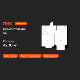 Продаётся 1-комн. квартира площадью 42,1 кв.м на 6 этаже 9 этажного дома (Корпус 2.2, Секция 9) проекта ПИК Лермонтовский 54. Светлый просторный подъезд на уровне земли, функциональная планировка, большие окна, без отделки.