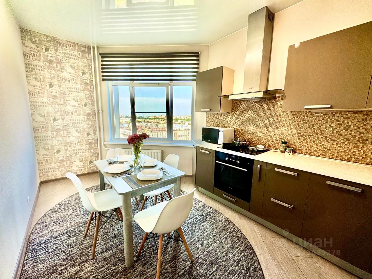 Квартира расположена на оптимальной высоте: видны салюты в центре города, не поднимаются выхлопные газы, меньше шума.