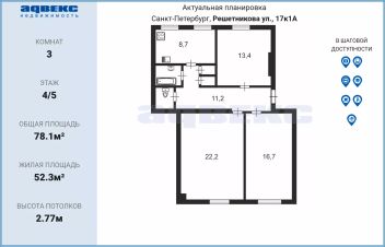 Продается просторная двухсторонняя коммунальная квартира общей площадью 78,10 м2. В квартире три комнаты, большой коридор, а также раздельный туалет и ванная, что добавляет удобства в повседневной жизни. Два больших стенных шкафа обеспечивают достаточно места для хранения вещей.