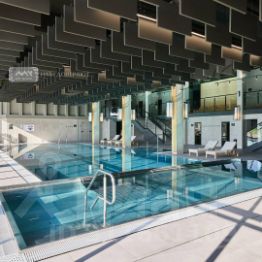 На территории ЖК открыт первый термальный хилинг-комплекс в России Green Flow Lakhta Park - с крытым и открытым бассейнами, фитнес-центром и гастропабом.