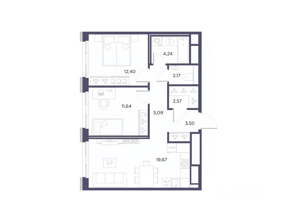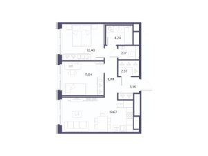 2-комн. квартира от застройщика с предчистовой отделкой в ЖК "Лисичанская, 22" на 5 этаже. Общая площадь: 61.28 кв.м., жилая: 24.04 кв.м., площадь просторной кухни-столовой: 19.67 кв.м. Комнаты изолированные, все окна выходят на одну сторону. В квартире один балкон, один раздельный санузел. Высота потолков 2.7 м.