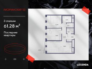 Продается двухкомнатная квартира с предчистовой отделкой в ЖК "Лисичанская, 22" на 5 этаже. Общая площадь: 61.28 кв.м., жилая: 24.04 кв.м., площадь просторной кухни-столовой: 19.67 кв.м. Комнаты изолированные, все окна выходят на одну сторону. В квартире один балкон, один раздельный санузел. Высота потолков 2.7 м.