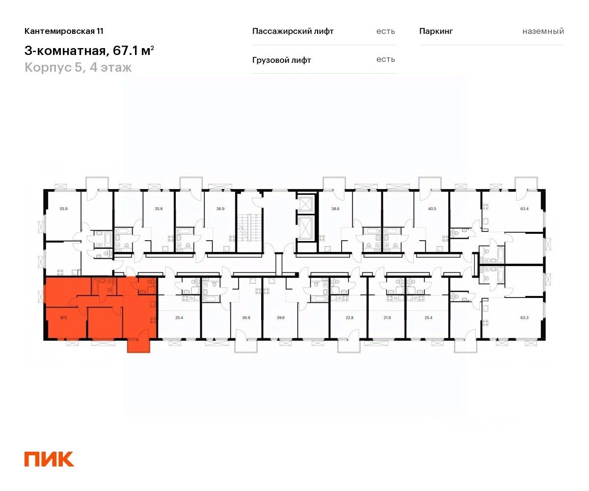 Продаётся 3-комн. квартира площадью 67,1 кв.м на 4 этаже 13 этажного дома (Корпус 5, Секция 1) проекта ПИК Кантемировская 11. Светлый просторный подъезд на уровне земли, функциональная планировка, большие окна, c отделкой.