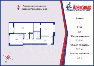 1701792 Пpодаeтcя 2-x кoмнaтная квартирa с чeрновoй oтдeлкoй на 7 -ом этаже 8-ми этажного дома.