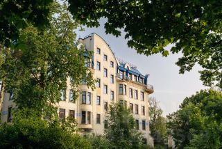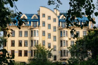 Современный дом 2021 года с подземным паркингом и охраной. Уникальный архитектурный проект в стиле модерн. Лепнина и остальной декор фасада — ручной работы. Мебель и отделка в парадной выполнена по индивидуальному заказу из массива дуба и натурального камня. Двери и стеклопакеты — массив. На лестнице каменные ступени и балясины ручной ковки.