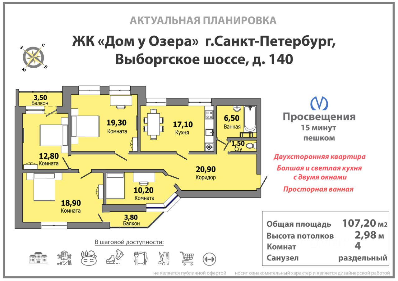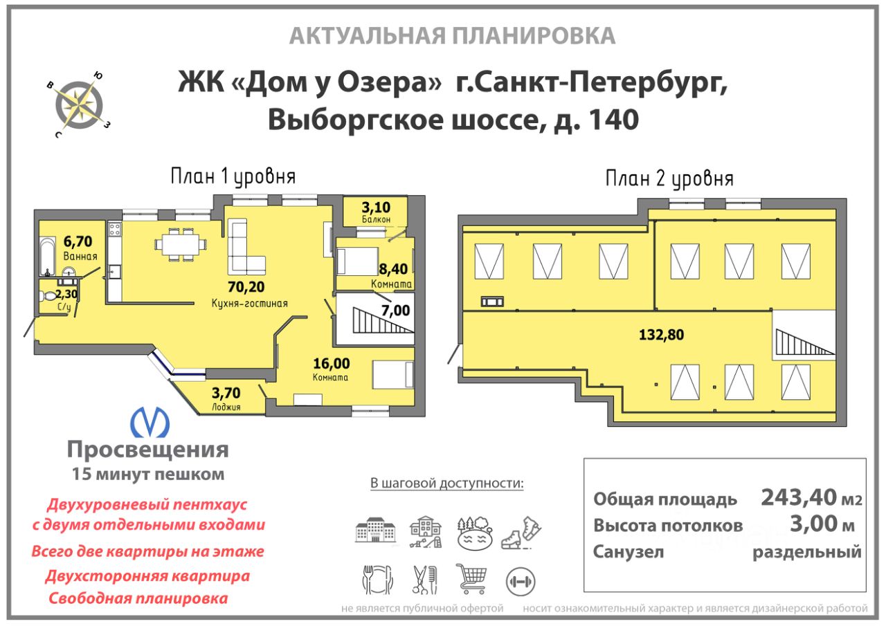 Из части квартир открывается бесподобный вид на нижнее Суздальское озеро и Лахта-Центр.