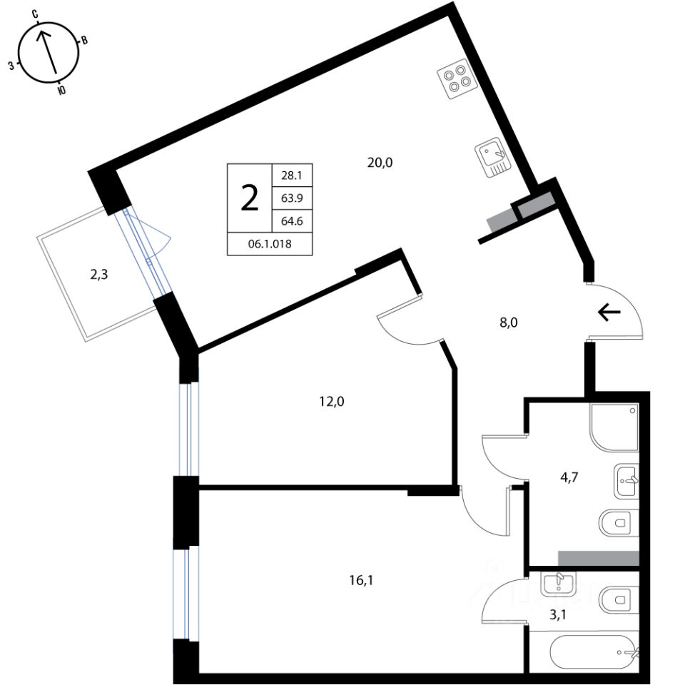 Продаётся 2-комнатная квартира в строящемся доме (Дом 6), срок сдачи: II-кв. 2026, общей площадью 64.6 кв.м., на 2 этаже. Новый жилой комплекс "Экография" от застройщика "ОХТА Групп - Петергоф" расположен по адресу Ленинградская область, Ломоносовский район, Низинское сельское поселение, деревня Ольгино.