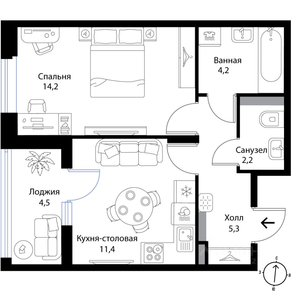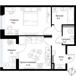 Продаётся 1-комнатная квартира в строящемся доме (Дом 2), срок сдачи: I-кв. 2026, общей площадью 39.6 кв.м., на 3 этаже. Новый жилой комплекс "Экография" от застройщика "ОХТА Групп - Петергоф" расположен по адресу Ленинградская область, Ломоносовский район, Низинское сельское поселение, деревня Ольгино.