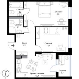 Продаётся 2-комнатная квартира в строящемся доме (Дом 2), срок сдачи: I-кв. 2026, общей площадью 57.1 кв.м., на 3 этаже. Новый жилой комплекс "Экография" от застройщика "ОХТА Групп - Петергоф" расположен по адресу Ленинградская область, Ломоносовский район, Низинское сельское поселение, деревня Ольгино.