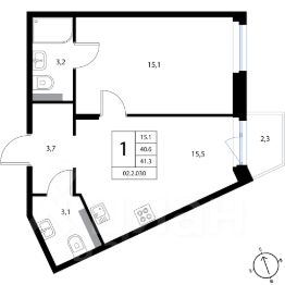 Продаётся 1-комнатная квартира в строящемся доме (Дом 2), срок сдачи: I-кв. 2026, общей площадью 41.3 кв.м., на 2 этаже. Новый жилой комплекс "Экография" от застройщика "ОХТА Групп - Петергоф" расположен по адресу Ленинградская область, Ломоносовский район, Низинское сельское поселение, деревня Ольгино.